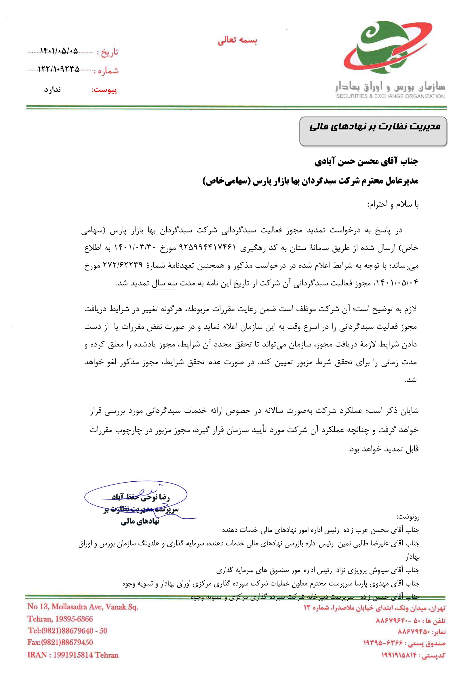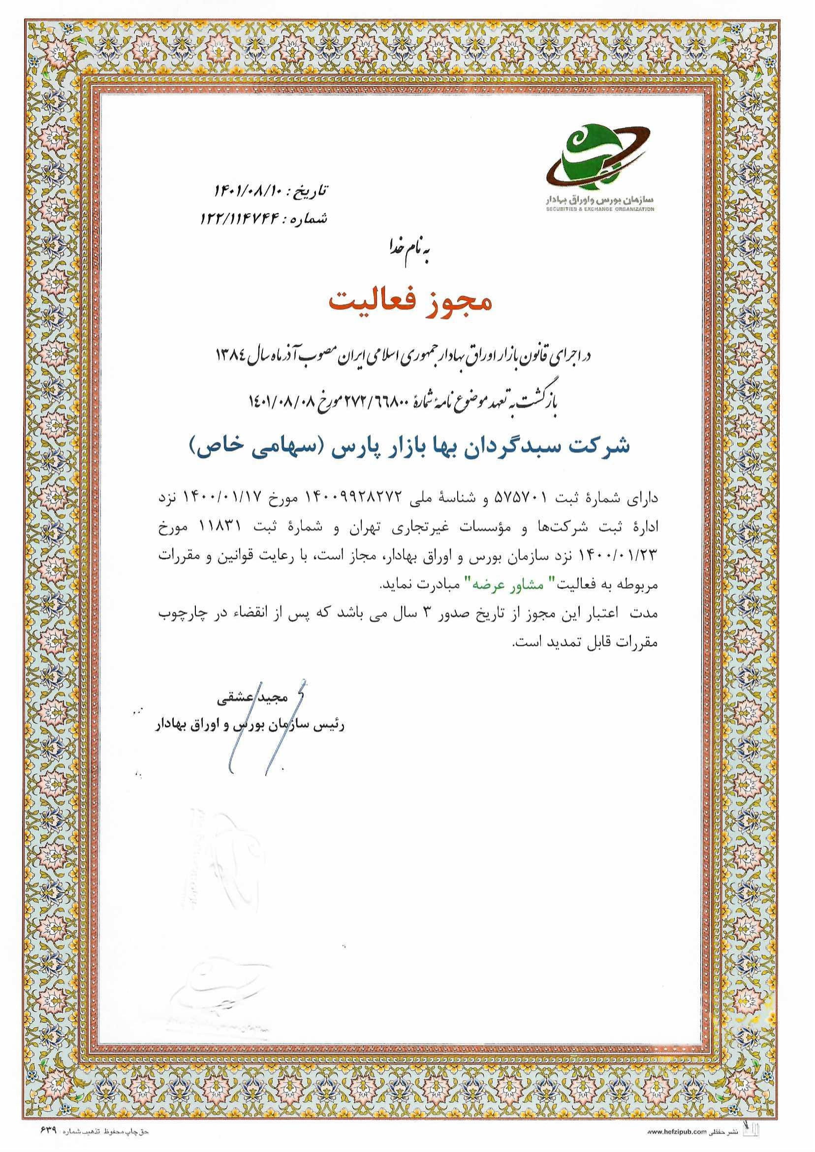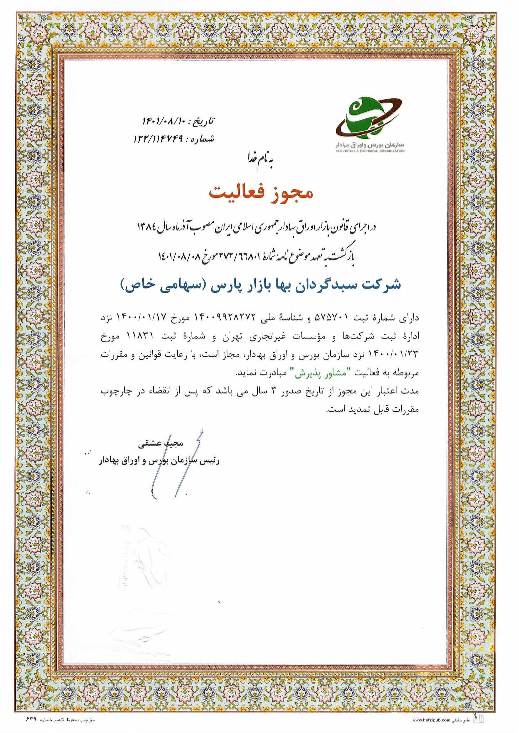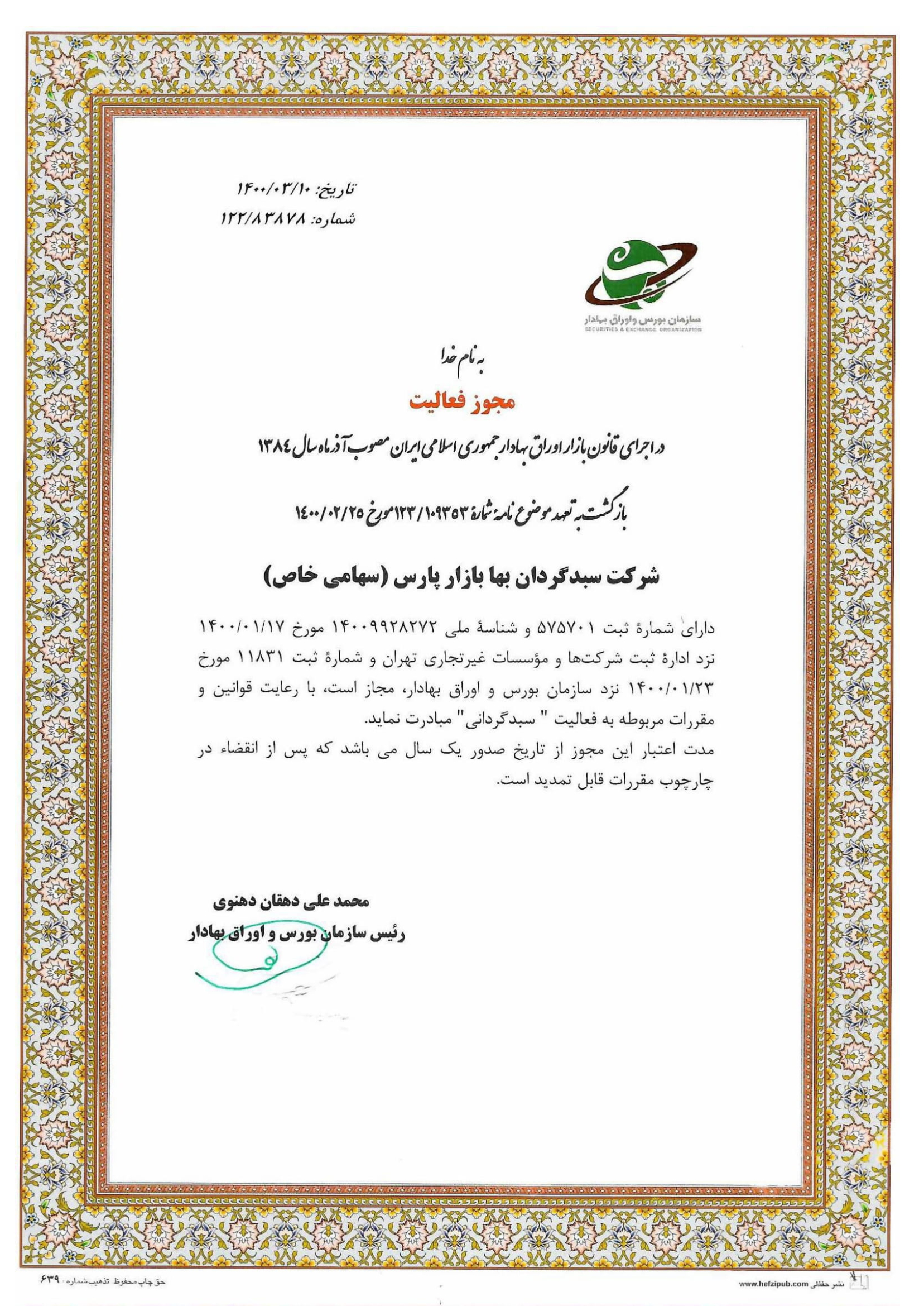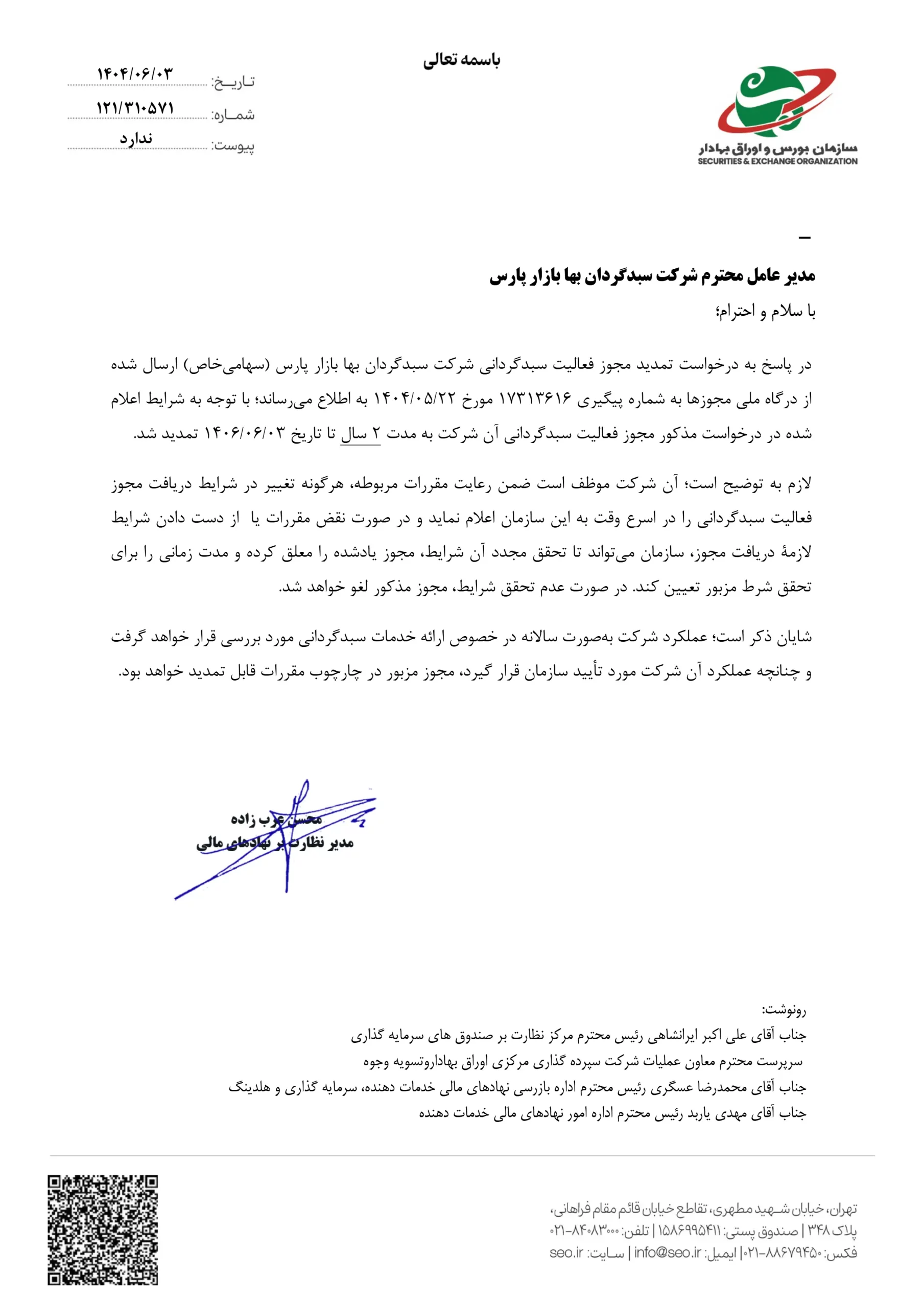 تمدید مجوز فعالیت در سال ۱۴۰۴